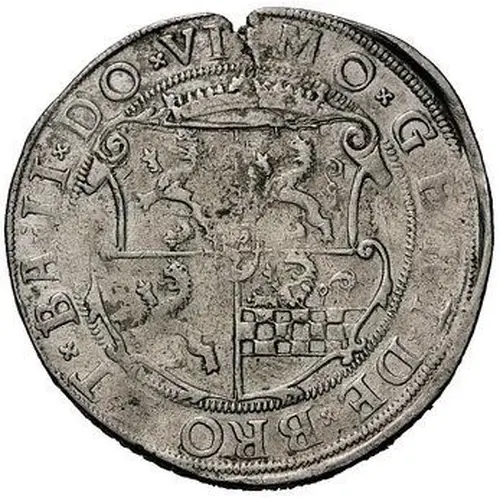 | Описание аверса | Crowned quartered arms of Bronckhorst-Brederode-Batenburg-Mark in ornate frame. |