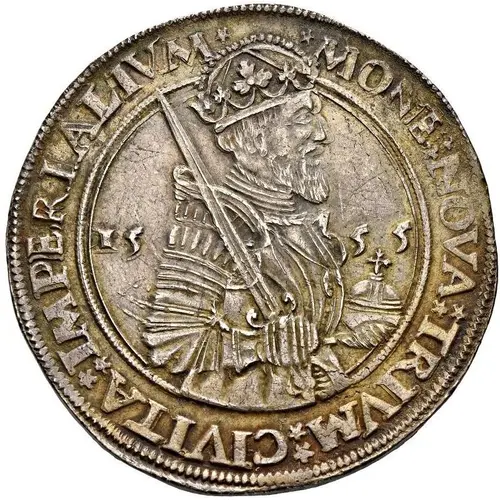 ★MONE ⁑ NOVA ⁑TRIVM ⁑ CIVITA ⁑ IMPERIALIVM ⁑ ★ (Translation: New coinage of the three imperial cities ...) |