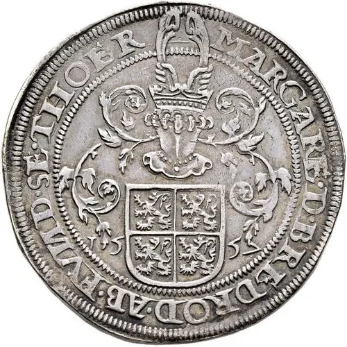 | Obverse lettering | MARGARE · D · BREDROD · AB · FVND` · SE` · THOER 1557 (Translation: Margaretha of Brederode, Abbess of the Secular Church of Thorn) |