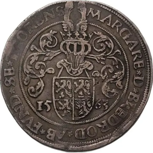 | Averslegende | MARGARE` ❀ D ❀ BREDROD ❀ AB ❀ FVND` ❀ SE` ❀ THORENS 1563 (Translation: Margaretha of Brederode, Abbess of the Secular Church of Thorn) |