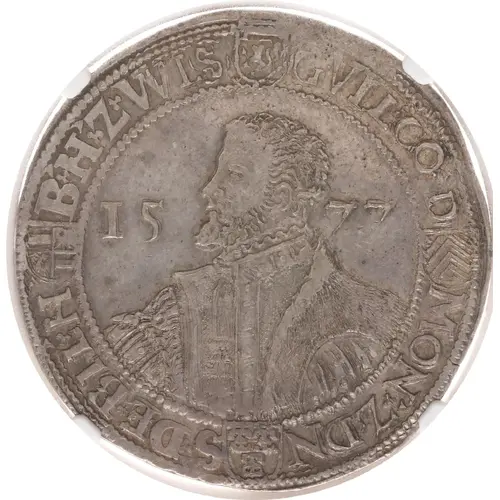 | Ön yüz açıklaması | Buste facing left dividing year. Legend between pearled circles, divided by arms of Egmond, arms of Culemborg and, arms of Meurs Saarwerden |