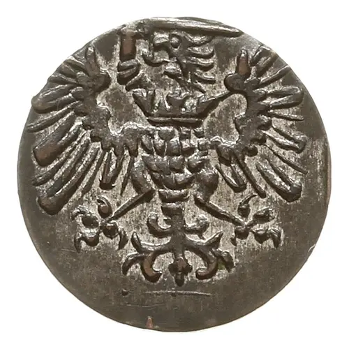 Technical/Grading: Weighing a mere 0.3 grams and measuring 12 millimeters, this silver denar presents significant challenges for technical assessment. High-points for strike quality include the definition of the crosses and crown on the Gdańsk shield, and any legible portions of the date or legend. Due to rapid production, examples often exhibit weak strikes, off-centering, and irregular planchets. A fully struck example, with clear details on both sides and a well-centered design, is exceptionally rare, making even lower-grade specimens historically significant.