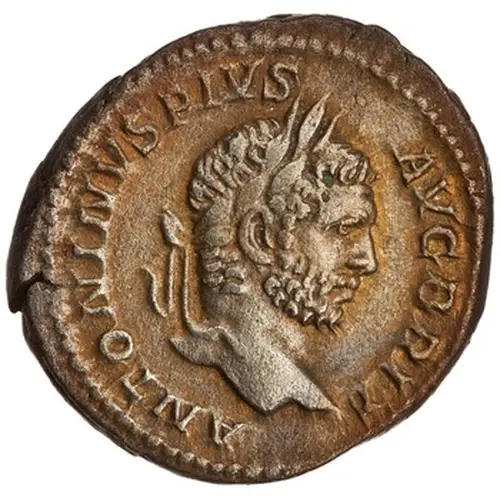 | Obverse description | Head of Caracalla, laureate, bearded, right. |