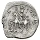 Reverse description Emperor on horseback riding towards left over a captive, lettering around.