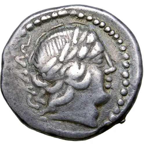 | 表面の説明 | Laureate head of Apollo to right, blundered legend behind. |