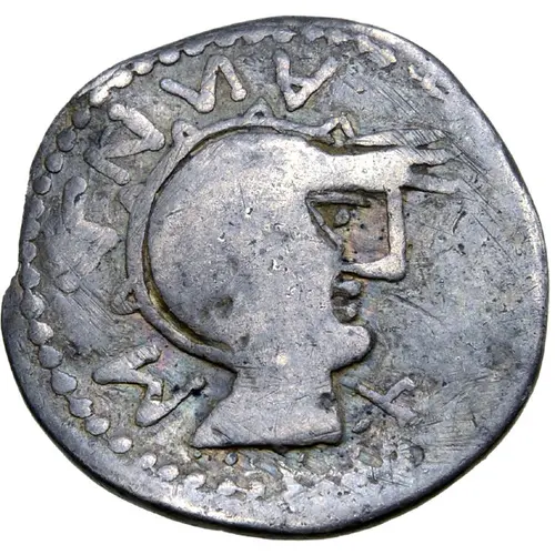 | 表面の説明 | Heavily stylised head of Roma to right; blundered legend around. |