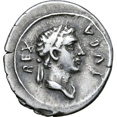 | Reverse description | Victory (Nike) standing to right on elephant head, holding wreath and palm; R XXXI behind. |