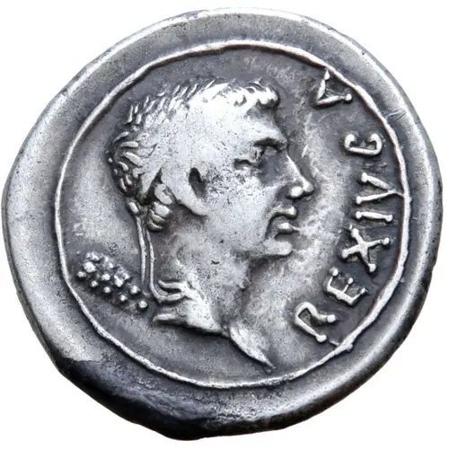 Obverse description Diademed bust of Juba right, club over shoulder.