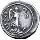 Reverse description Victory (Nike) standing to right on elephant head, holding wreath and palm; R XXXII behind.