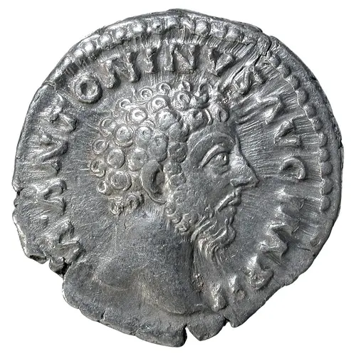 | 正面铭文 | M ANTONINVS AVG IMP II (Translation: Marcus Antoninus Augustus, Imperator, Secundum. Marcus [Aurelius] Antoninus emperor (Augustus), supreme commander (Imperator) for the second time.) |
