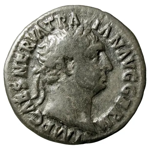 | Obverse lettering | IMP CAES NERVA TRAIAN AVG GERM (Translation: Imperator Caesar Nerva Traianus Augustus, Germanicus. Supreme commander (Imperator), Caesar, Nerva Trajan, emperor (Augustus), conqueror of the Germans.) |