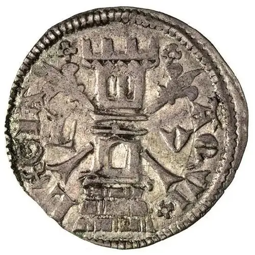| توضیحات روی سکه | Tower with crenellated top flanked by letters L V, over crossed scepters with lily tips. |
