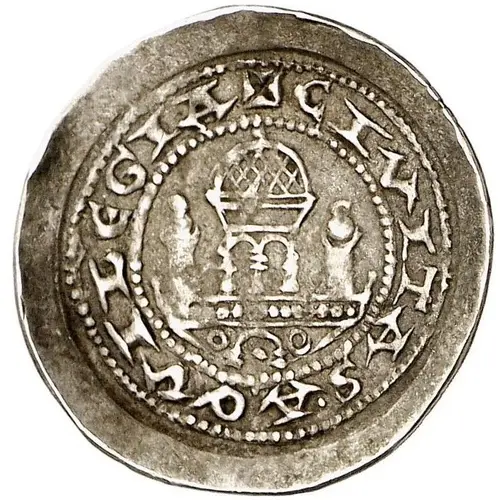 | Obverse description | Temple/church flanked by two towers over wall with arch, within inner beaded circle |