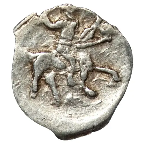 | Obverse description | Horseman advancing right, holding a spear. |