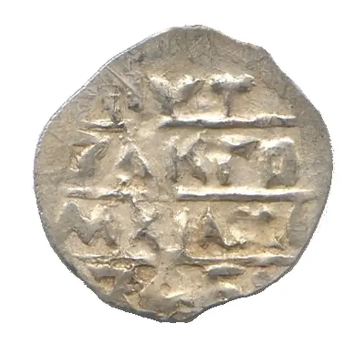 Technical/Grading: Given the diminutive size and weight (0.55 gg), the technical quality of these silver denga varies significantly. High-points for wear or strike typically include the horseman's head, weapon, or the uppermost portions of Cyrillic letters. A well-struck example exhibits full legends and a clear central device, though off-center strikes and weak areas from uneven hammer blows are common. The irregular flan shape, typical of medieval Russian coinage, impacts overall presentation. A sharp strike on a well-centered flan is exceptionally rare and highly prized.