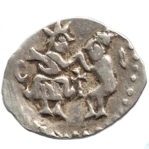 | Aversbeschreibung | Two figures, one of them (probable a Duke) is presented sitting on a chair. Each of the figures stretches its left hand upwards, towards each other. This composition is usually interpreted as a homage scene |