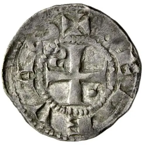 Technical/Grading: Given the 1.27 gram silver specification, these deniers are prone to common medieval striking irregularities. High-points susceptible to wear include the central bust's features (nose, mitre) and the arms of the cross. Technical strike qualities often exhibit off-center strikes, weak areas, particularly on the flan edges, and occasional double striking. Planchet irregularities, such as minor cracks or irregular shapes, are also frequently observed, reflecting the hand-crafted nature of their production.