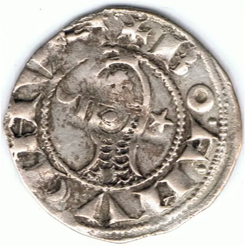 | Obverse description | Bust left, wearing Norman helmet decorated with cross pattée and chainmail coif; crescent to left, to right, star above pellet; double barred A with annulet at each end; S with pellets |