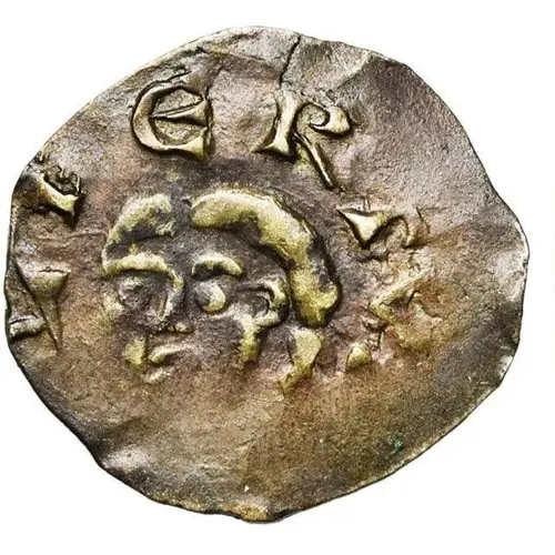 Artistry: The engraver of this denier is anonymous, characteristic of early medieval minting. Stylistically, it belongs to the nascent feudal coinage tradition, often exhibiting a schematic yet robust depiction. The obverse features a bust facing, typically rendered with simplified facial features and rudimentary headwear, reflecting the period's artistic conventions. The reverse likely displays a cross or similar cruciform motif, common for its protective and symbolic significance. The design prioritizes legibility of the ruler's effigy and basic legends.