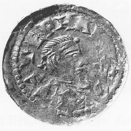 | Popis líce | Right bust of Saint Stephen blessing and holding a book. |