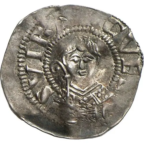 | Obverse description | Facing bust holding a crosier in a grenetis, surrounding legend. |