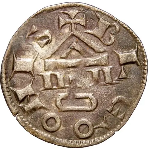 | Obverse description | Temple surmounted by a cross cutting the legend at the top, composed of a double pediment, four columns, bearing a cross in the middle and whose pedestal is formed of a large ove (there is also a variant where the ove is replaced by two lines). |