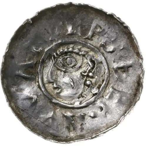 Reverse description A small cross in a wide circle. Two dots in the ancles of the cross.