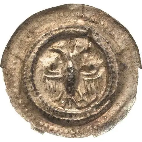 Technical/Grading: Weighing 0.37 grams of silver, this bracteate exemplifies the light coinage typical of its era. High-points, the central design's most raised elements, are highly susceptible to wear, creasing, and flattening due to the coin's inherent fragility. Strike quality is often uneven, with ghosting (a faint incuse image of the obverse) common on the reverse. Collectors should assess for planchet integrity, sharpness of the central motif, and minimal damage from bending or folding, critical for numismatic grading.