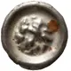 Obverse description Lion, head facing the viewer, to the right, hackles (?) over the back.