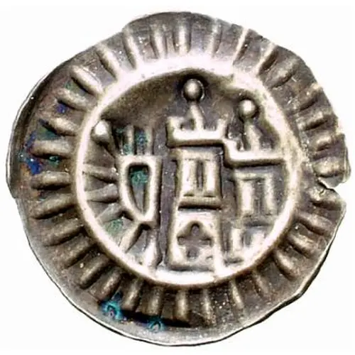 | Obverse description | Nettleleaf next to two towers, border of rays surrounding. |
