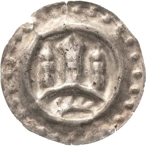| Obverse description | Deer antler in arch, three towers above. |