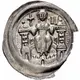 | Obverse description | Seated abbott holding lilly and bible on top of two-towered fortified building. |