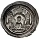 | Описание аверса | Half-length facing bust of Albrecht, holding sword and banner, within castle composed of turreted arch with two towers; small annulets around |