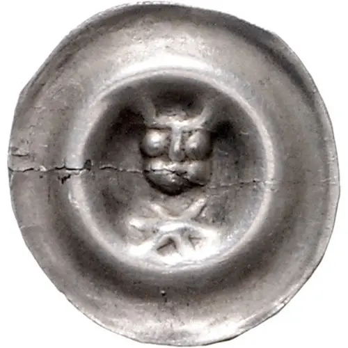 | Aversbeschreibung | Facing bust of bishop with mitra, star below. |