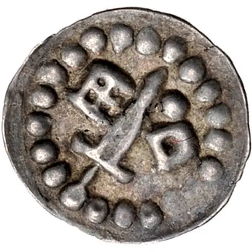 Technical/Grading: Struck in silver, this minute bracteate weighs 0.13 grams and measures 12 millimeters, reflecting its role as a fractional denomination. As a single-sided coin, its high-points are the sword's hilt and the key's bow and bit, areas most susceptible to wear. A strong strike reveals clear details, particularly the key's teeth. Given the inherent fragility and thinness of bracteates, off-center strikes or minor flan irregularities are common. A well-preserved example with full design details and minimal creasing is highly prized.