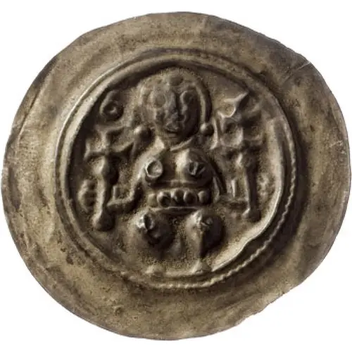 | Obverse description | Seated lord holding two cross-scepter`s, ring on upper left for mintmark of Wolkenstein. |
