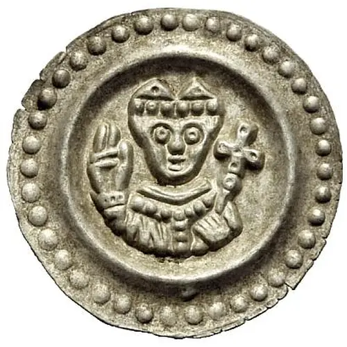 | Obverse description | Facing bishop with beneficent gesture and holding a cross-staff in the left hand. |