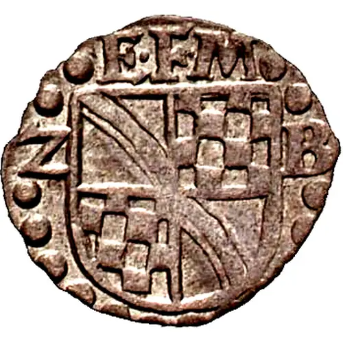 | Obverse description | Shielded 4-fold arms separate inscription to the sides, three letter inscription above all within beaded circle. |
