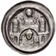 | Obverse description | Building with two towers, above half length figure of saint Lawrence of Rome holding hands up, below in arch half-length figure of bishop with mitra holding a crozier and a bible. |