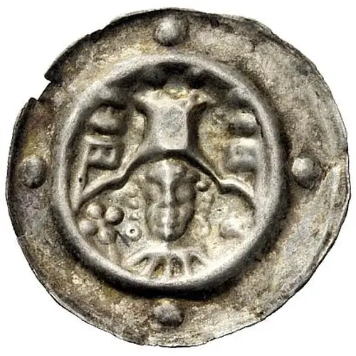 | Obverse description | Earl`s bust between cross and star under arch with three towers, 4 dots on outer rim. |