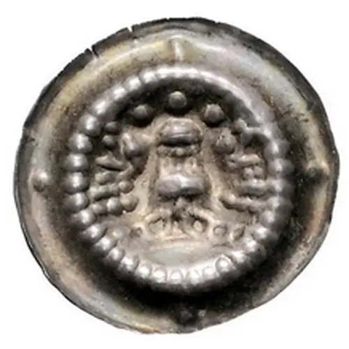 | Obverse description | Tower with three dots above, two lions heads facing outward to the sides. In outer field four dots. |