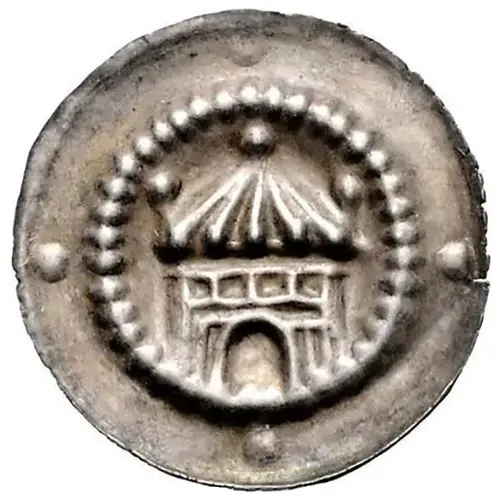 | Obverse description | Castle with arch and tower with three dots on top, in outer field four dots. |