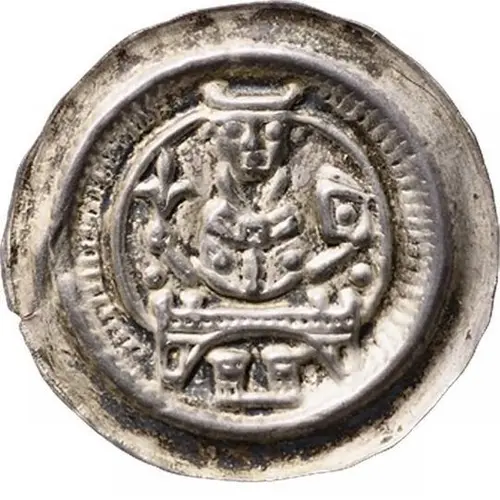 | Obverse description | Half-length bust of abbot with lilied scepter and book above archway, two towers underneath. |
