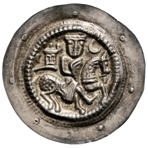 | Obverse description | Landgraf on horseback right, to the left a tower over arch with a crescent moon, to the right a crescent moon. 7 dots on outer rim. |