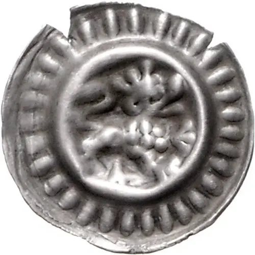| Obverse description | Crowned rampant lion turned right, rays on outer edge. |