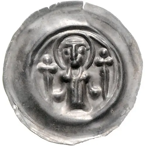 | Obverse description | Saint stephen holding a cross staff in each hand. |