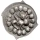 Descripción del anverso Dragon or Lindworm turned right within beaded circle.