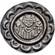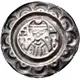 | Descrizione del dritto | Half-length figure facing, wearing mitra, holding chalice and cross; pair of pellets flanking head; all within border of pellets-in-arches. |