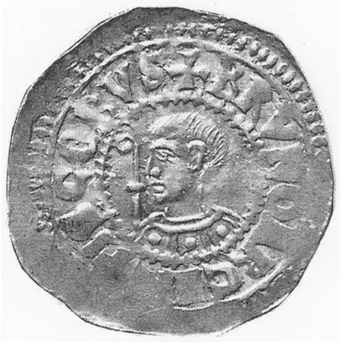 | Popis líce | Bust on the left holding a crosier in a grenetis, legend around it. |
