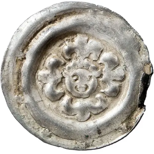 | Popis líce | Head with tonsure, frontal, surrounded by four lilies arranged in a circle. A beaded circle. A star-shaped border. A pearl circle. |